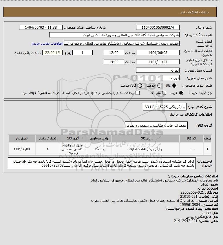 شرح کلی نیاز: چاپگر رنگی A3 HP dn5225