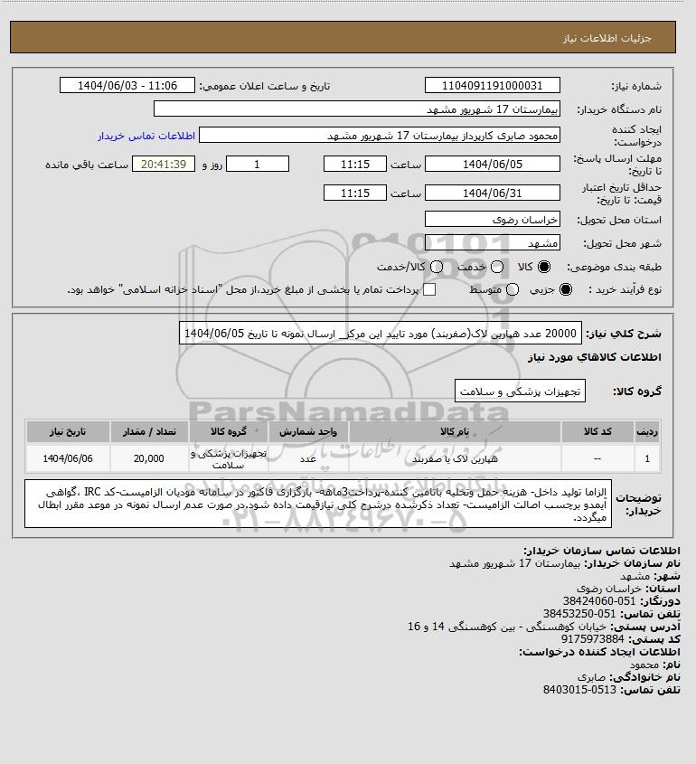 نام دستگاه خریدار:بیمارستان 17 شهریور مشهد