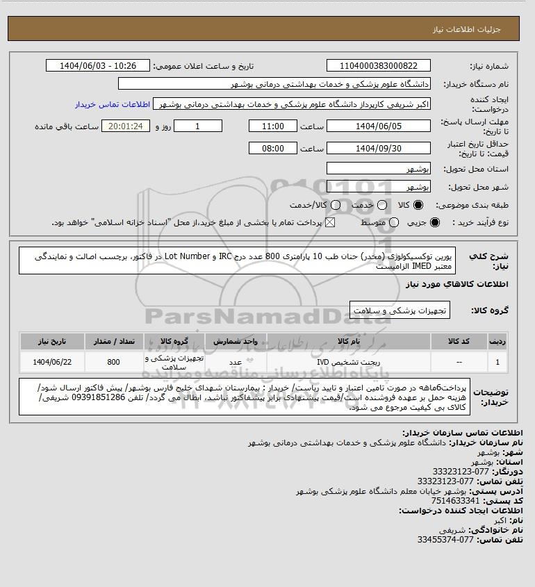 نام دستگاه خریدار:دانشگاه علوم پزشکی و خدمات بهداشتی درمانی بوشهر