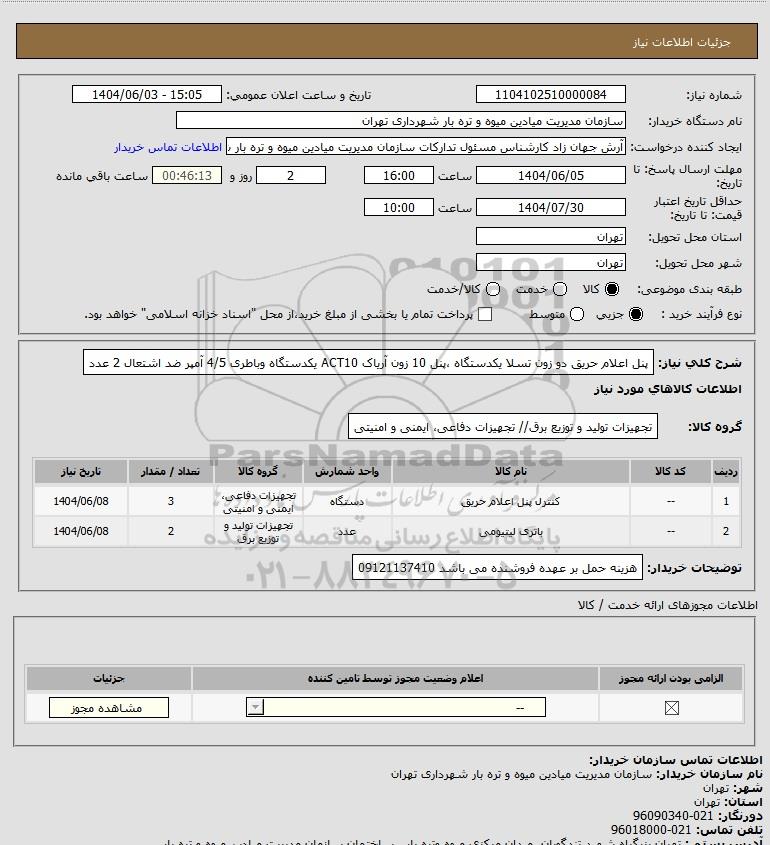 1 -- کنترل پنل اعلام حریق دستگاه تجهیزات دفاعی، ایمنی و امنیتی 3 1404/06/08