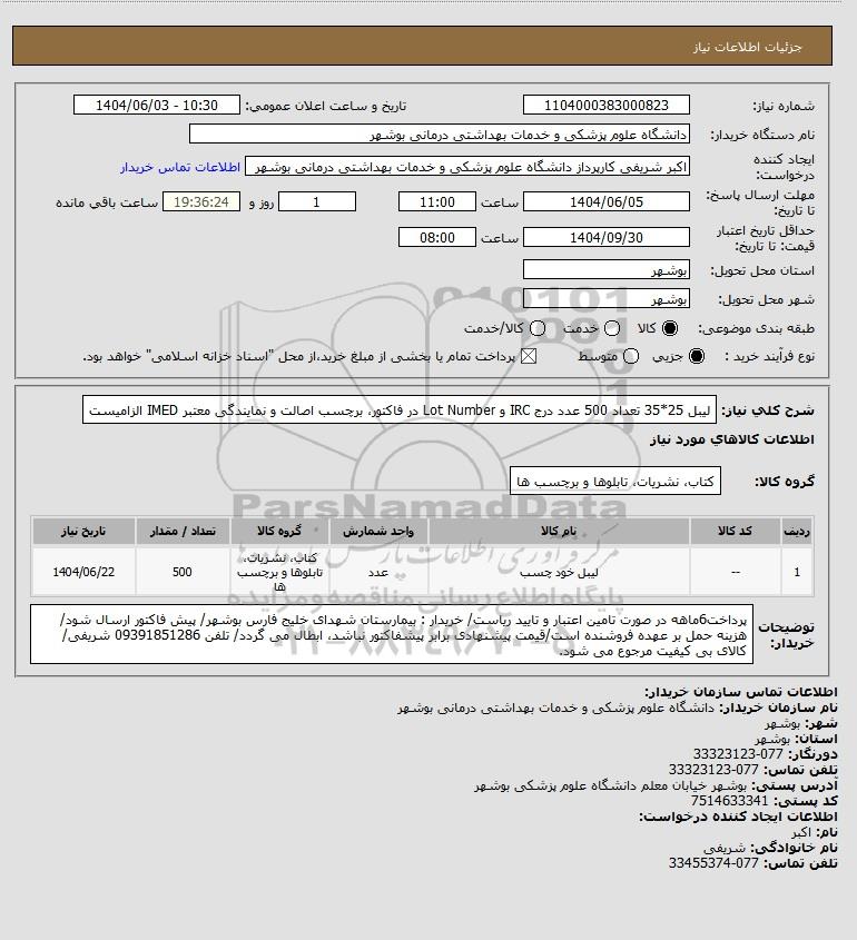 شرح کلی نیاز: لیبل 25*35 تعداد 500 عدد