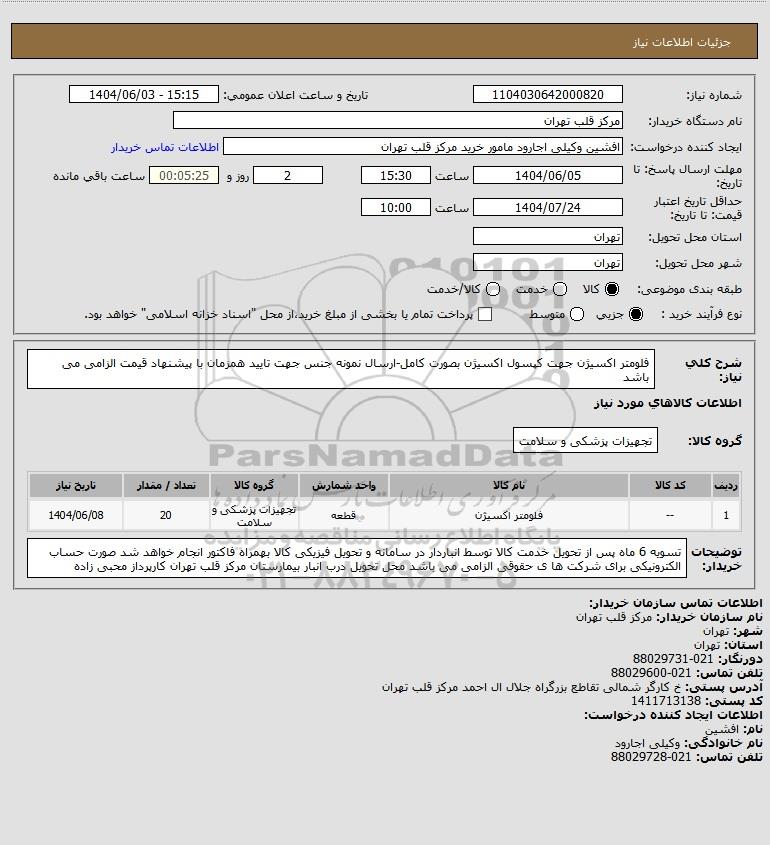 | 1 | -- | فلومتر اکسیژن | قطعه | تجهیزات پزشکی و سلامت | 20 | 1404/06/08 |