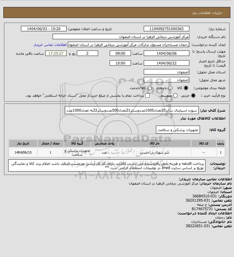 نام سازمان خریدار: مرکز آموزشی درمانی الزهرا در استان اصفهان