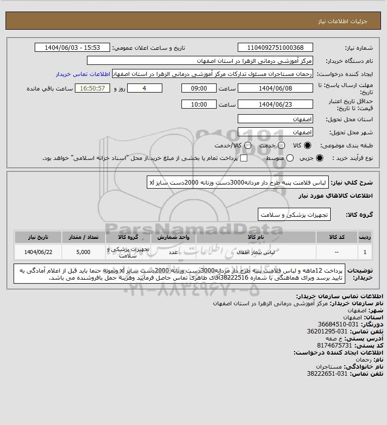 1 -- لباس بیمار اطفال عدد تجهیزات پزشکی و سلامت 5,000 1404/06/22