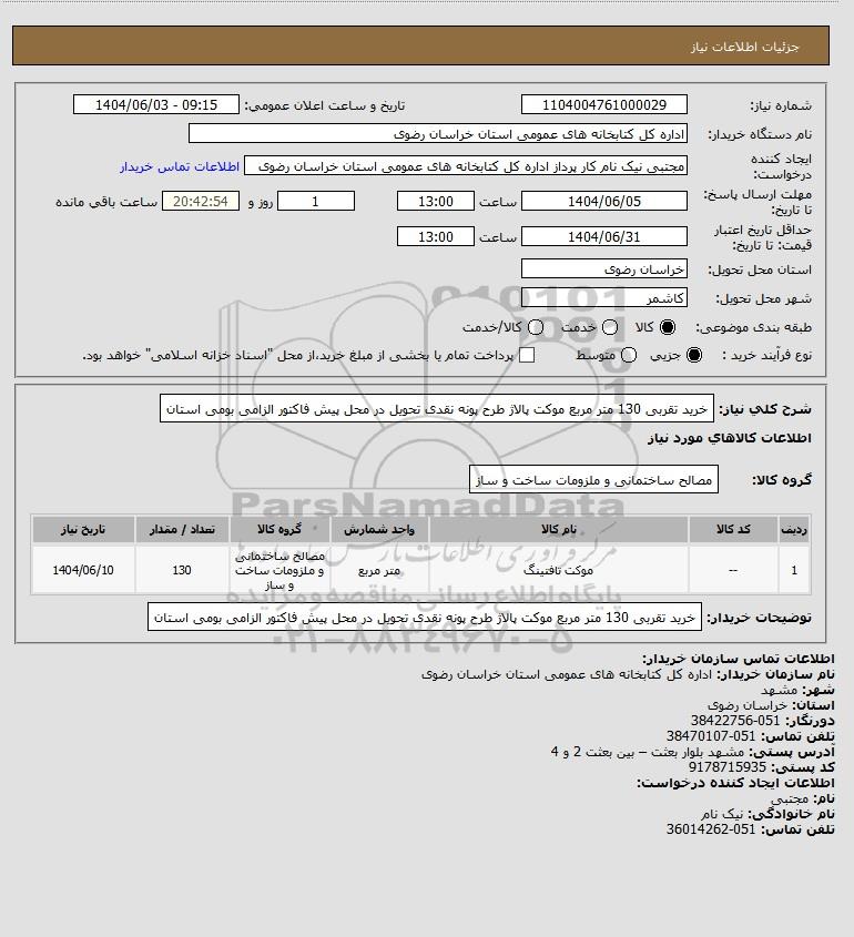 نام دستگاه خریدار:اداره کل کتابخانه های عمومی استان خراسان رضوی