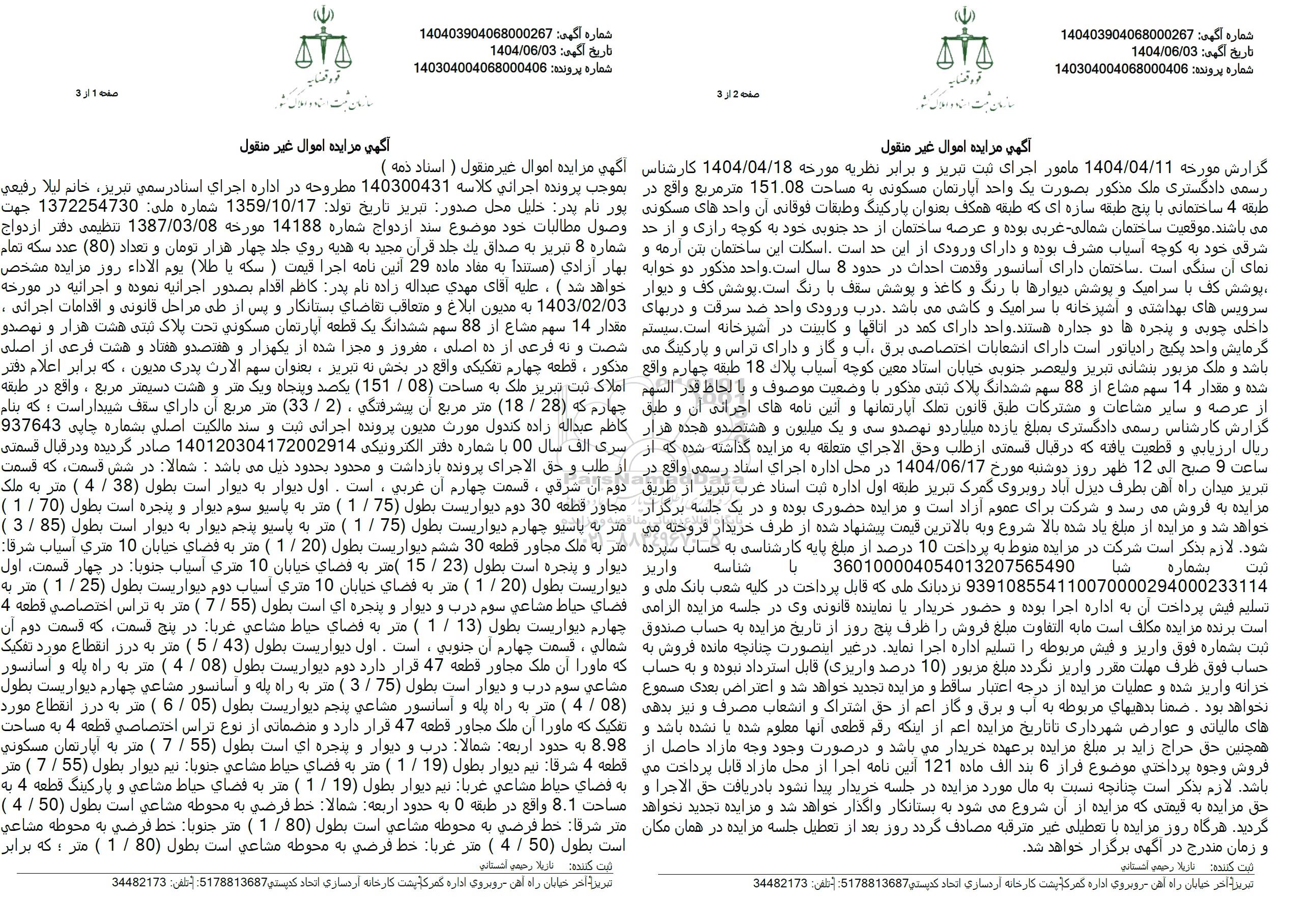 تاریخ مزایده 1404.06.17 ساعت 9 الی 12