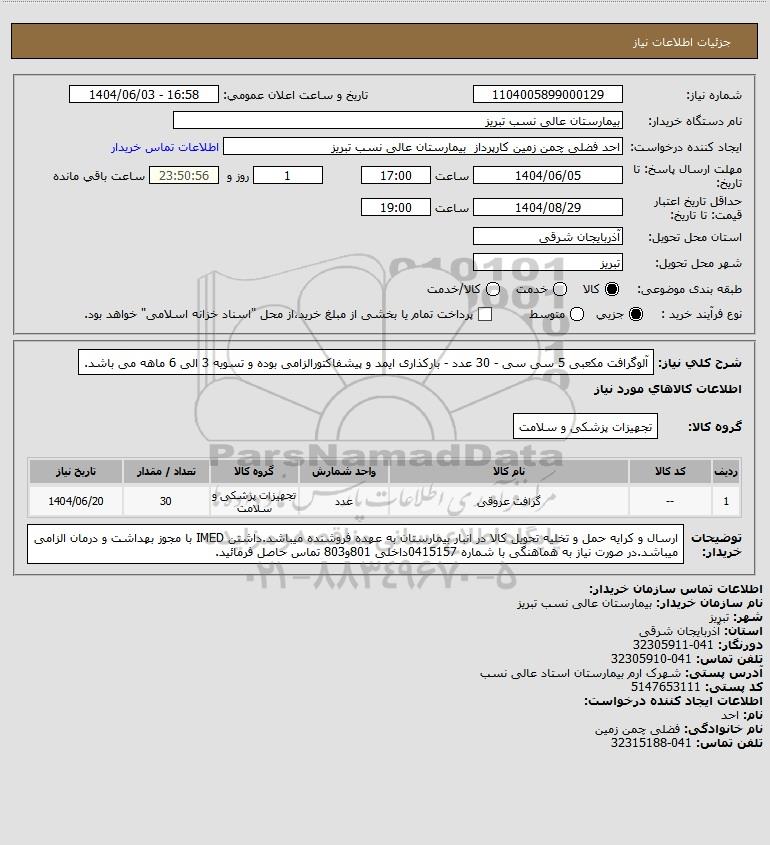 نام دستگاه خریدار:بیمارستان عالی نسب تبریز