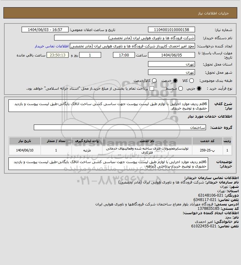نام دستگاه خریدار:شرکت فرودگاه ها و ناوبری هوایی ایران (مادر تخصصی)