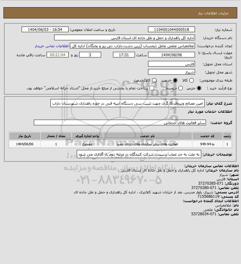 نام دستگاه خریدار:اداره کل راهداری و حمل و نقل جاده ای استان فارس