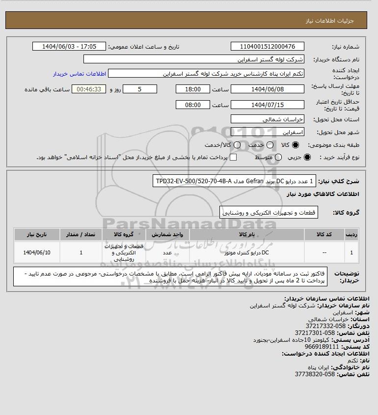 1 -- DC درایو کنترل موتور عدد قطعات و تجهیزات الکتریکی و روشنایی 1 1404/06/10