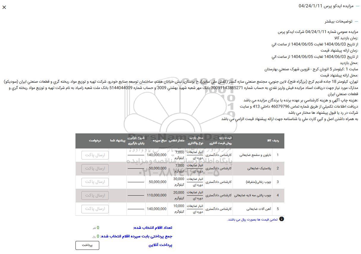 مزایده ایدکو پرس 04/24/1/11