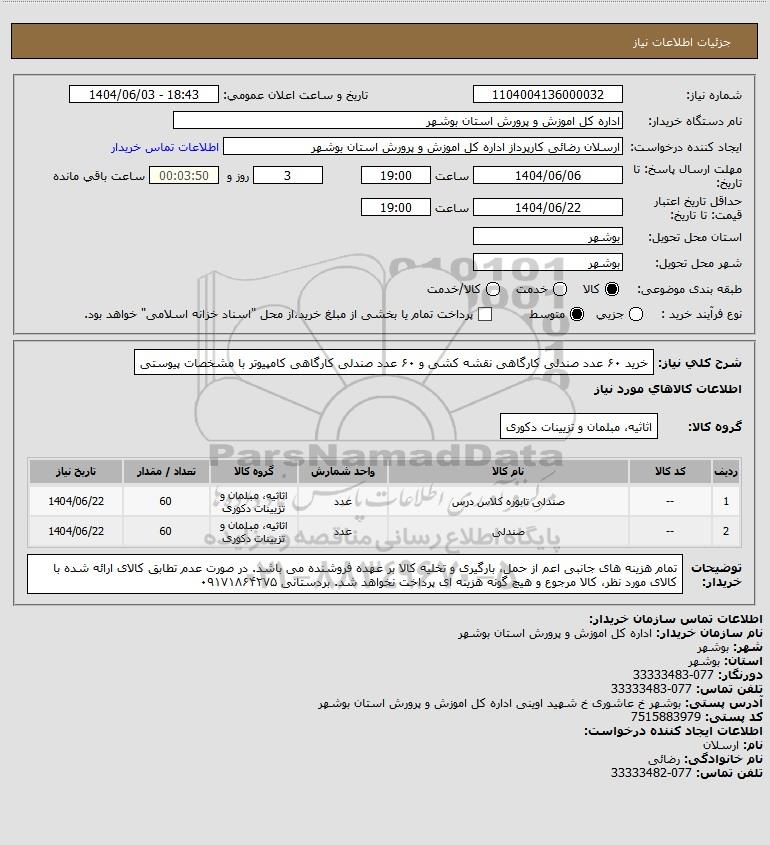 نام دستگاه خریدار:اداره کل اموزش و پرورش استان بوشهر