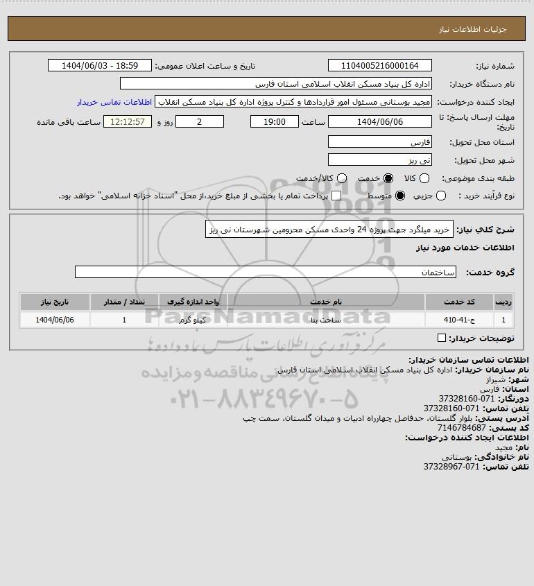 نام دستگاه خریدار:اداره کل بنیاد مسکن انقلاب اسلامی استان فارس