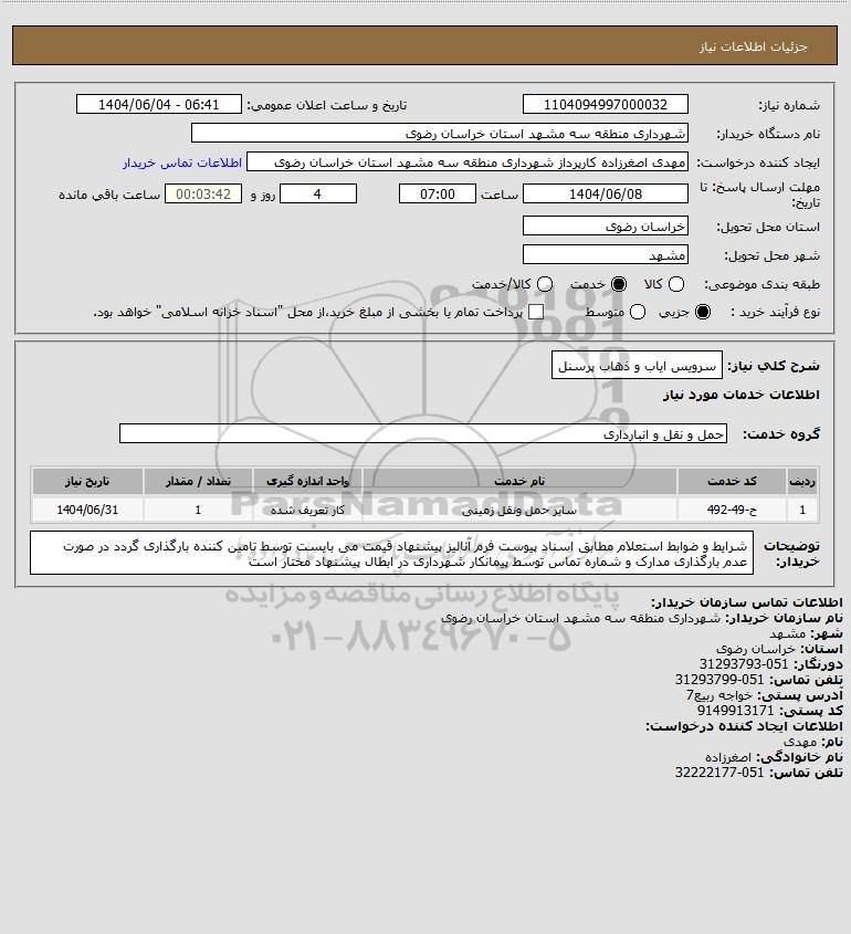 شرح کلی نیاز: سرویس ایاب و ذهاب پرسنل