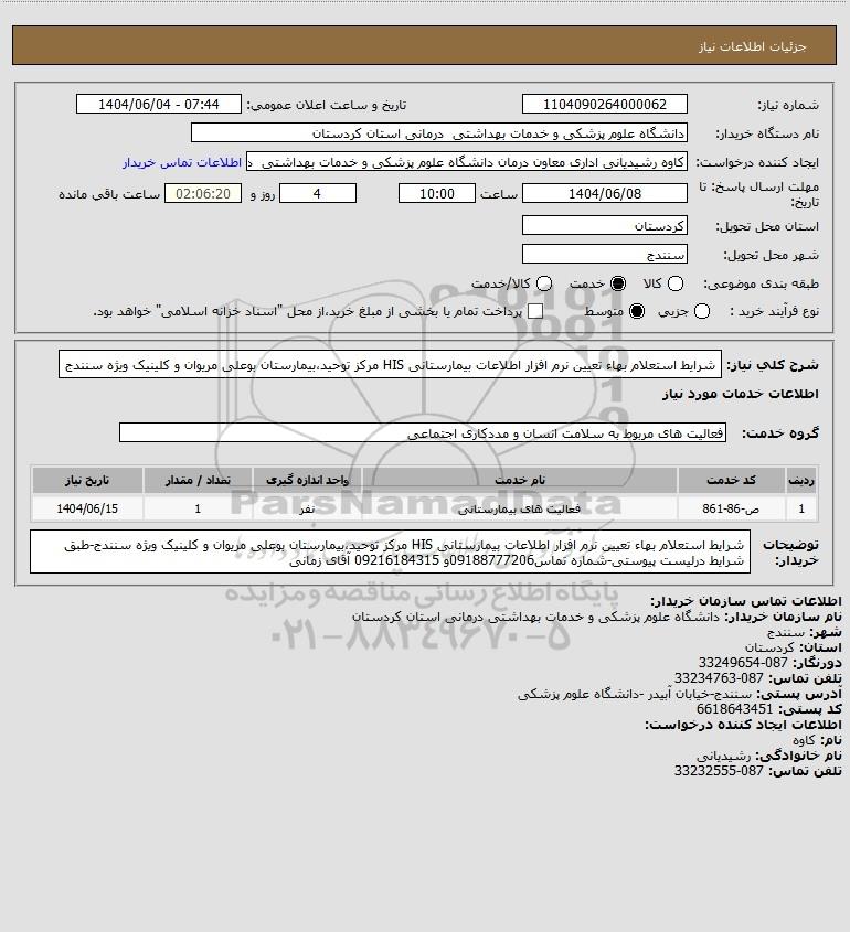 استعلام شرایط استعلام بهاء تعیین نرم افزار اطلاعات بیمارستانی HIS مرکز توحیدبیمارستان بوعلی مریوان و کلینیک ویژه سنندج, استعلام شرایط استعلام بهاء تعیین نرم افزار اطلاعات بیمارستانی HIS مرکز توحید،بیمارستان بوعلی مریوان و کلینیک ویژه سنندج