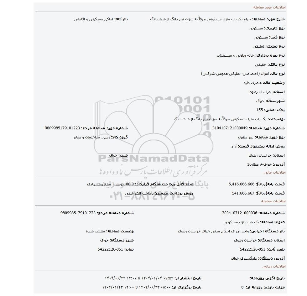 | شماره مورد معامله: 3104107121000049 | شماره مورد معامله مرجع: 9809985179101223 | |