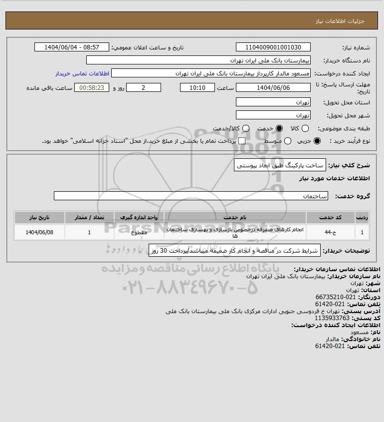 شرح کلی نیاز: ساخت پارکینگ طبق ابعاد پیوستی