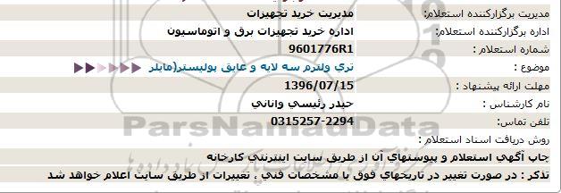 اداره برگزارکننده استعلام: اداره خرید تجهیزات برق و اتوماسیون