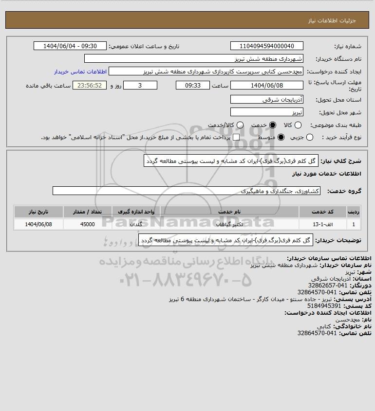 نام دستگاه خریدار:شهرداری منطقه شش تبریز