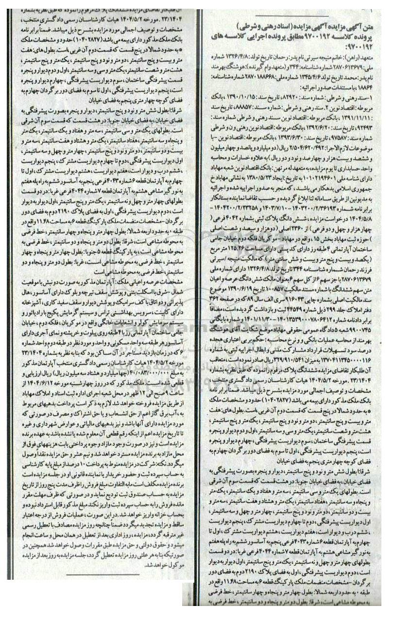 مزایده فروش پلاک ثبتی بشماره 4042 فرعی (چهار هزار و چهل و دو فرعی) از 2360 اصلی, مزایده فروش پلاک ثبتی بشماره 4042 فرعی (چهار هزار و چهل و دو فرعی) از 2360 اصلی