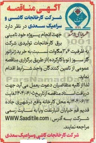 شرکت کارخانجات کاشی و سرامیک سعدی در نظر دارد