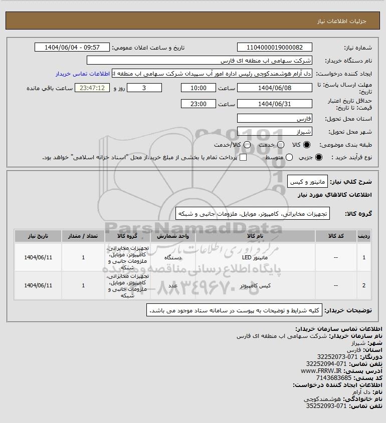 نام سازمان خریدار: شرکت سهامی اب منطقه ای فارس