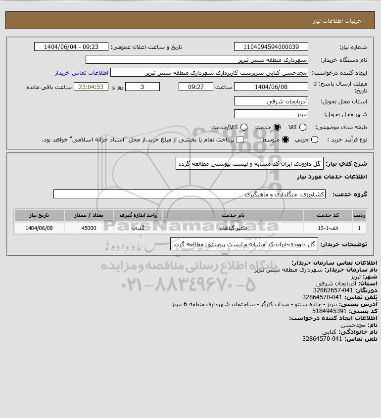 شرح کلی نیاز: گل داوودی-ایران کد مشابه و لیست پیوستی مطالعه گردد