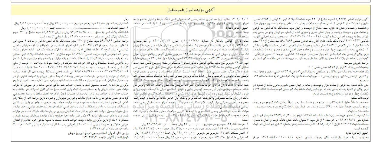 مزایده فروش ششدانگ پلاک ثبتی 3 فرعی از 8254 اصلی , مزایده فروش ششدانگ پلاک ثبتی 3 فرعی از 8254 اصلی
