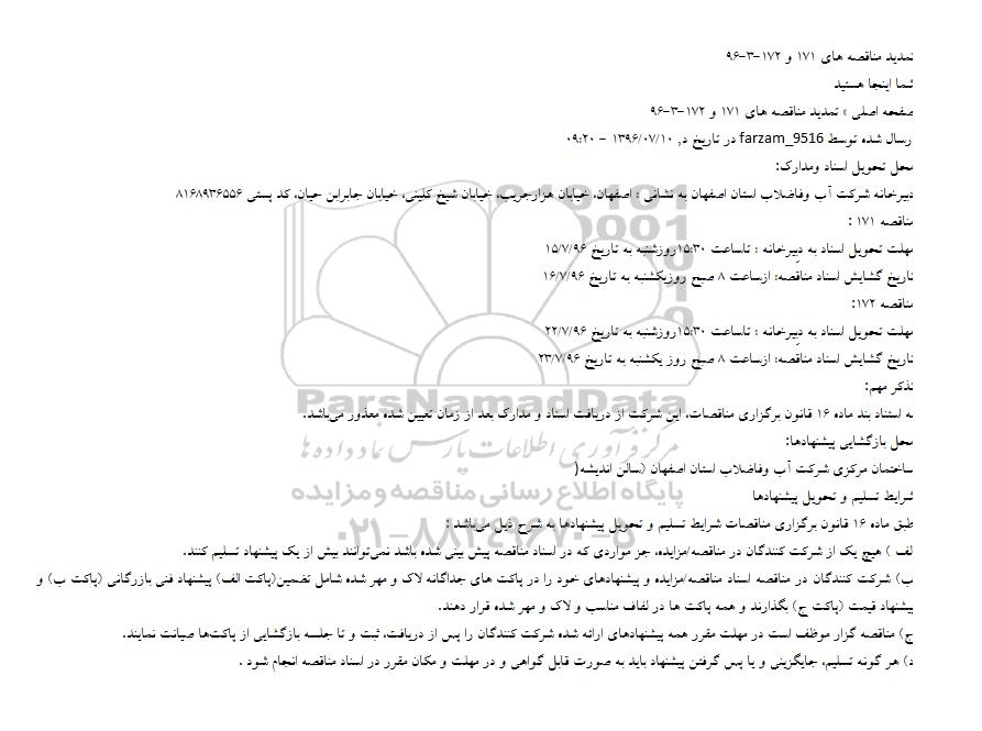تمدید مناقصه های 171 و 172-3-96 ؟