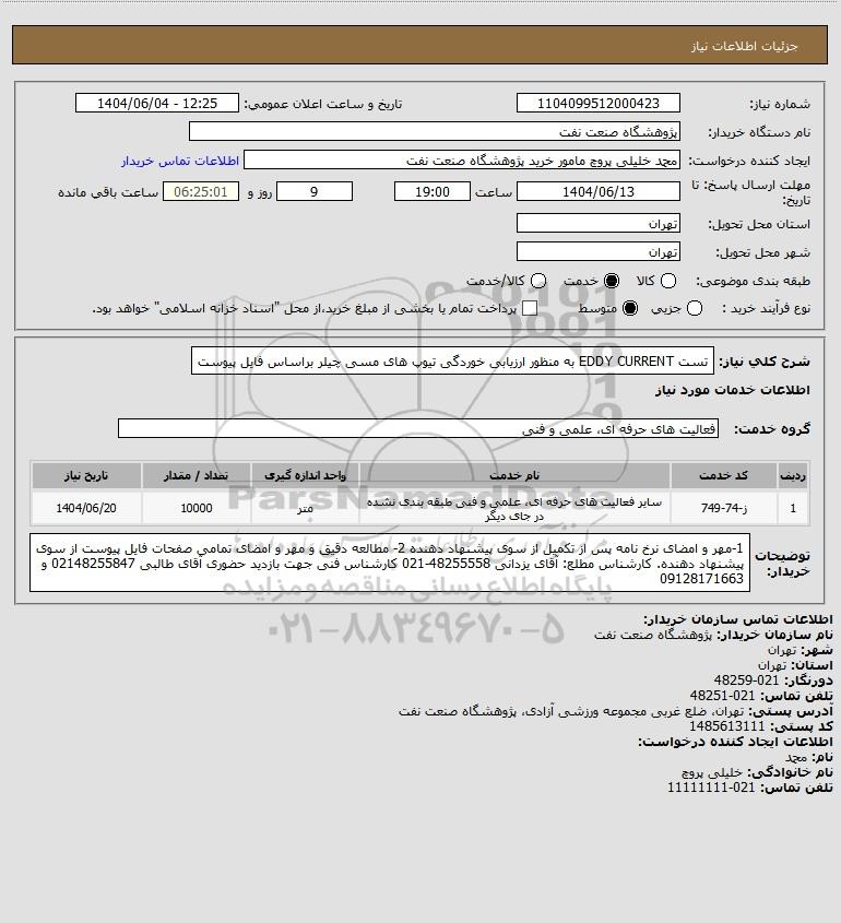 نام دستگاه خریدار:پژوهشگاه صنعت نفت