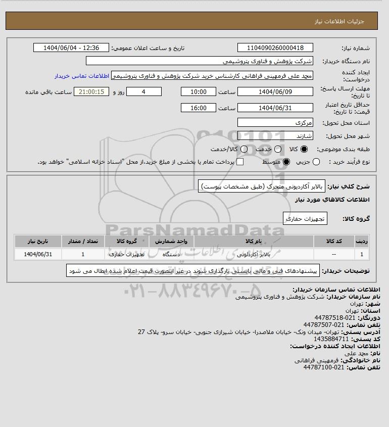 شرح کلی نیاز: بالابر آکاردیونی متحرک (طبق مشخصات پیوست)