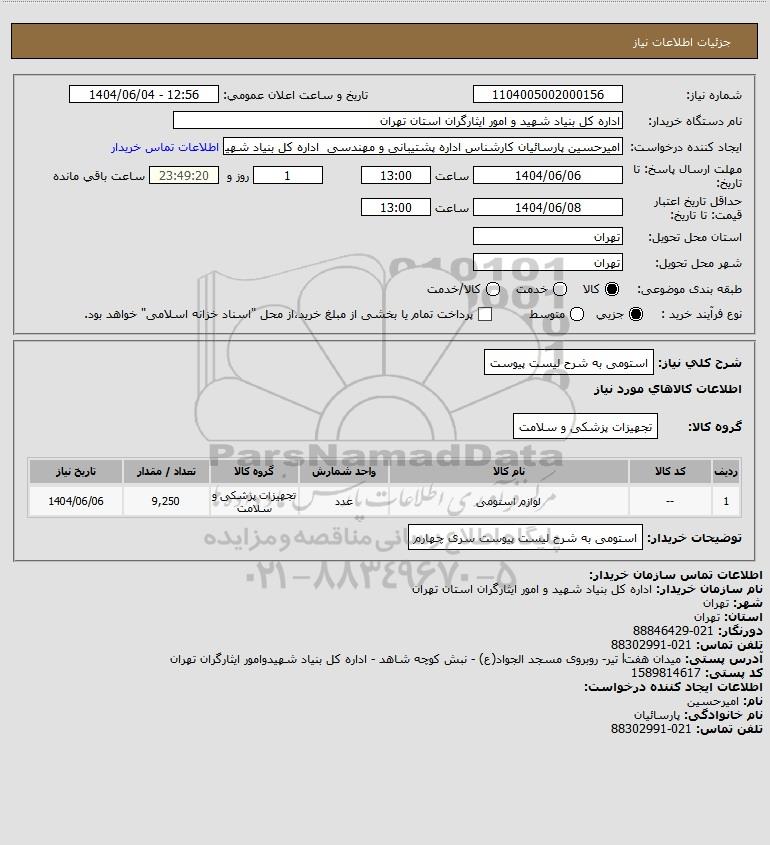 نام دستگاه خریدار:اداره کل بنیاد شهید و امور ایثارگران استان تهران
