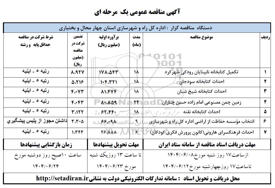 دستگاه مناقصه گزار : اداره کل راه و شهرسازی استان چهار محال و بختیاری