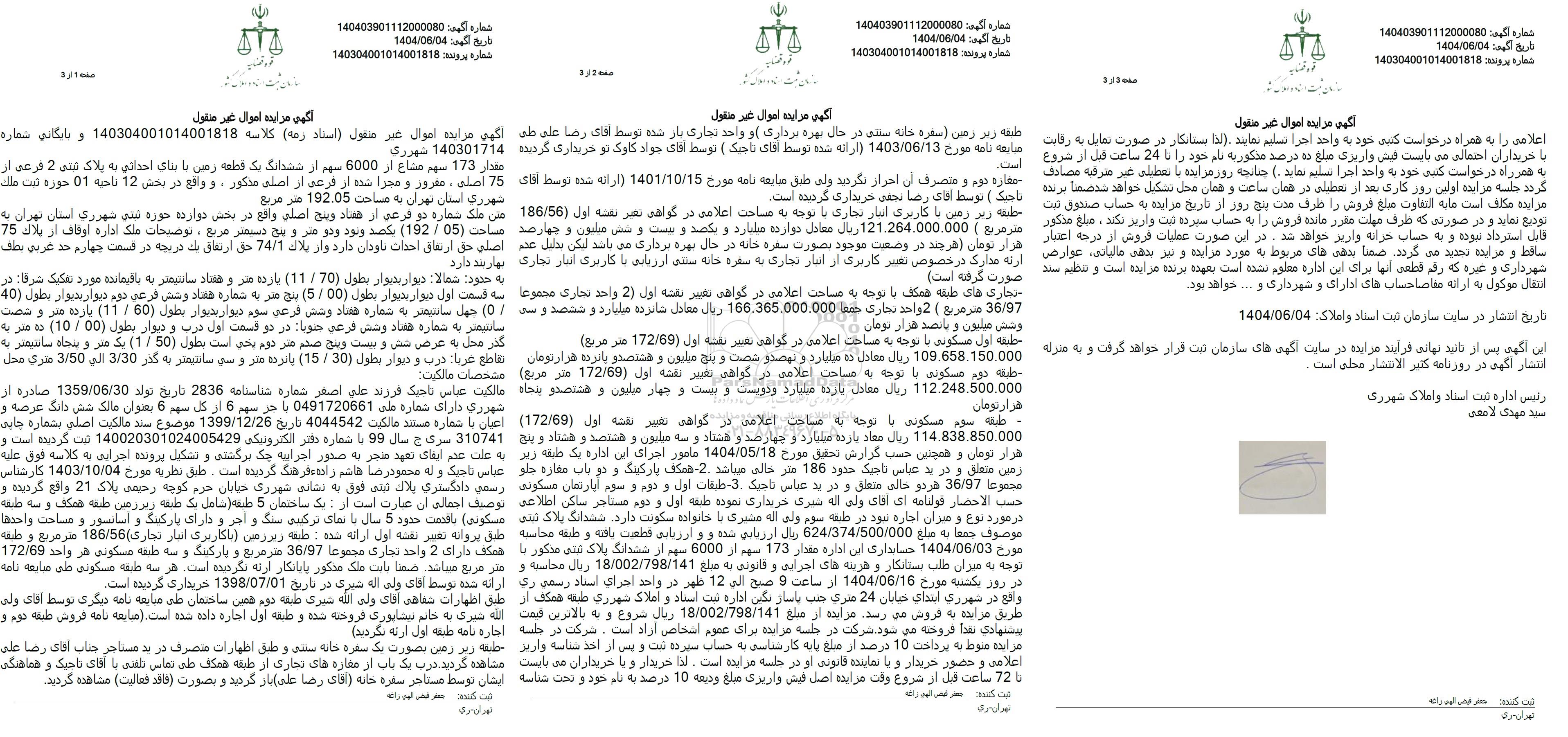 تاریخ مزایده: از ساعت 9 الی 12 مورخ 1404.6.16