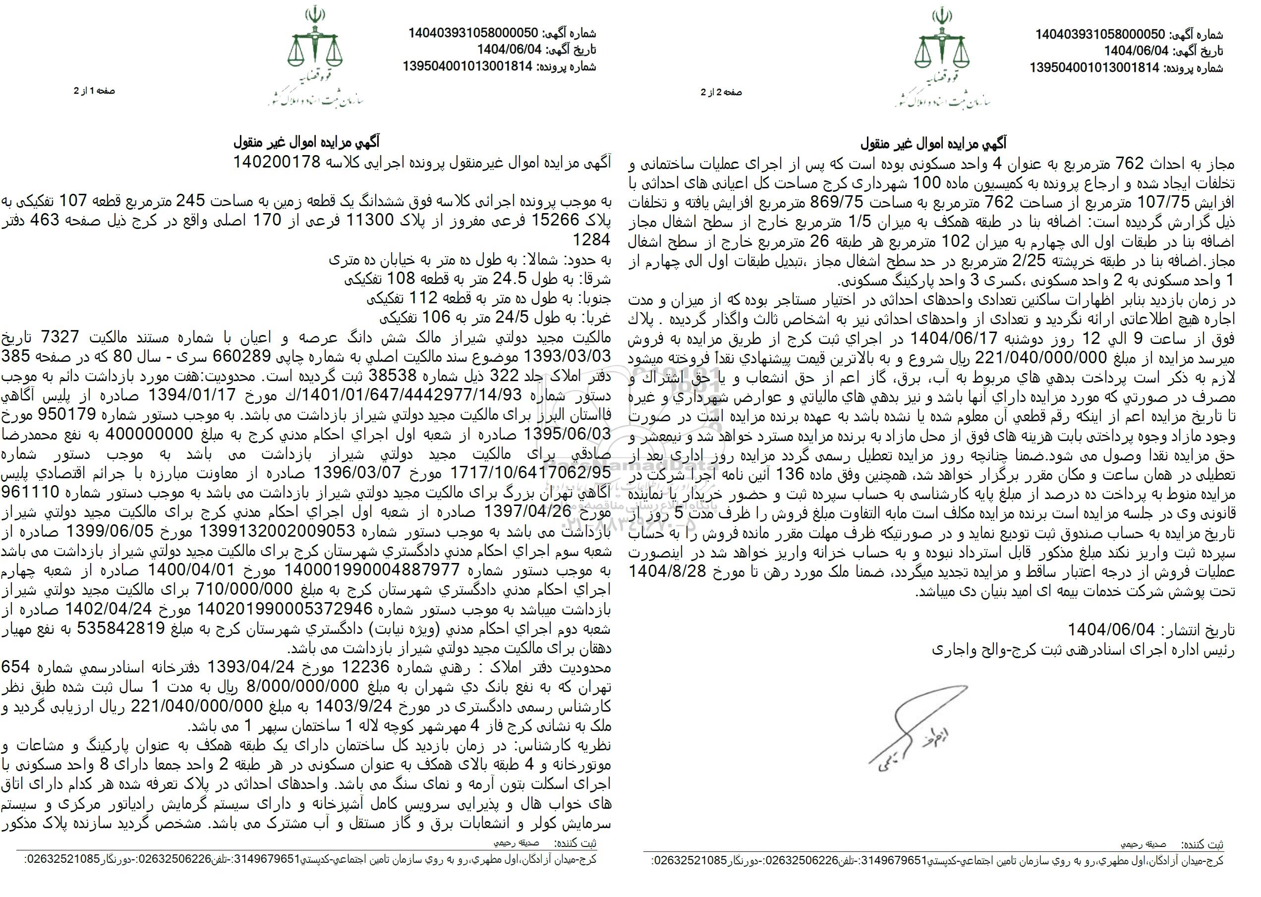 شماره آگهی: 140403931058000050