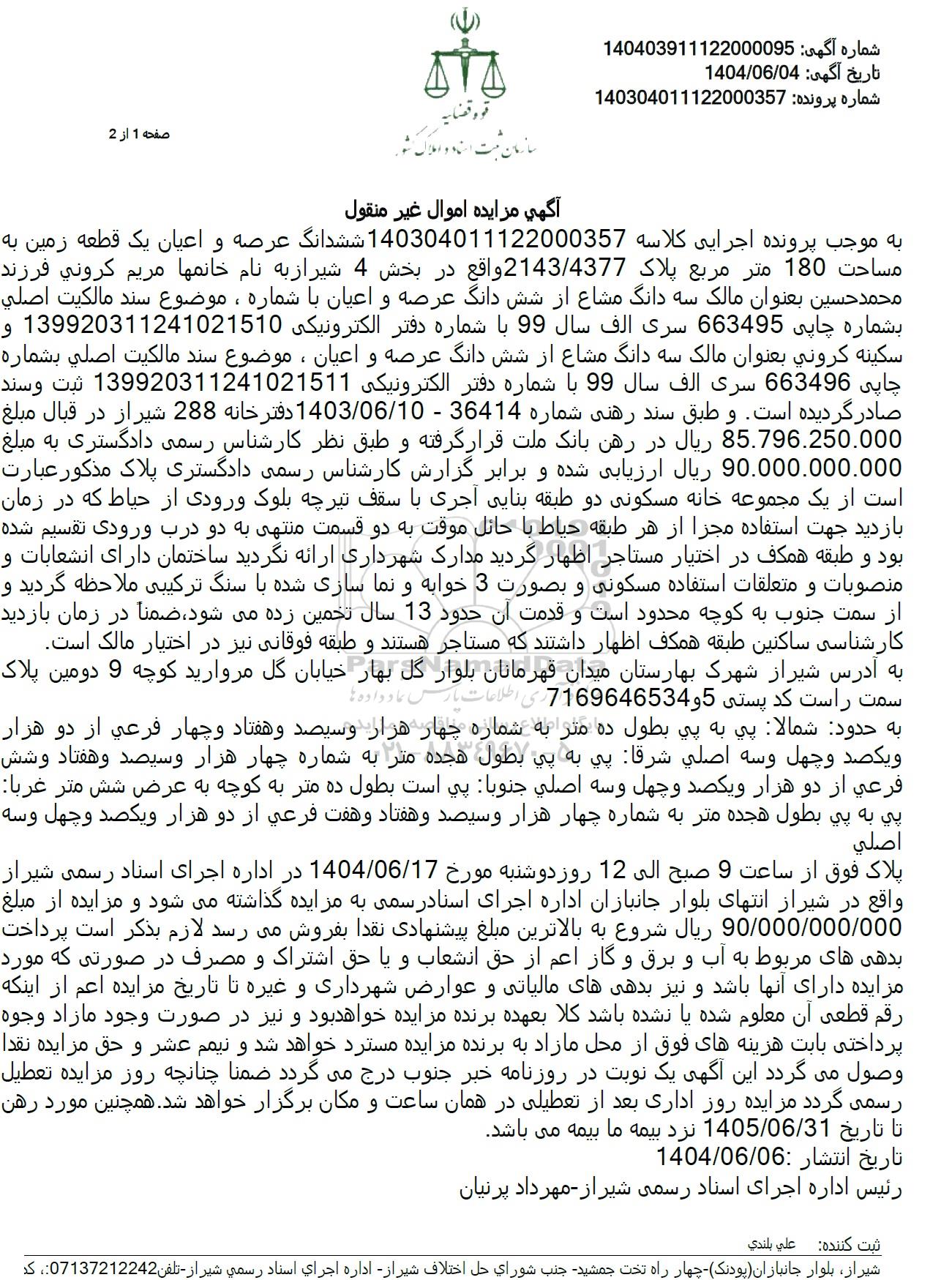 مزایده فروش سه دانگ مشاع از یک قطعه زمین به مساحت 180 مترمربع, مزایده فروش سه دانگ مشاع از یک قطعه زمین به مساحت 180 مترمربع