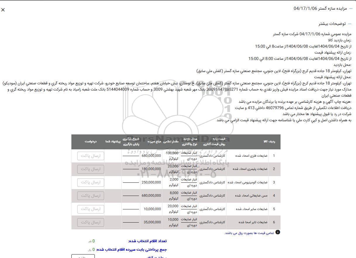 مزایده ضایعات فلزی امحاء شده ..., مزایده ضایعات فلزی امحاء شده ...
