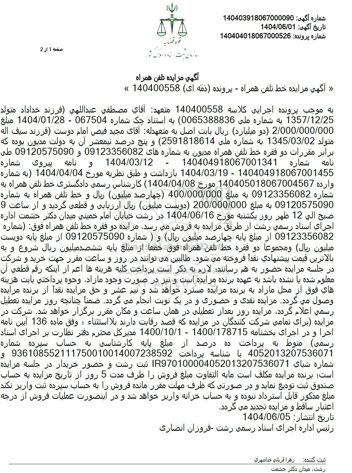 مزایده امتیاز خط تلفن همراه به شماره 09123356082