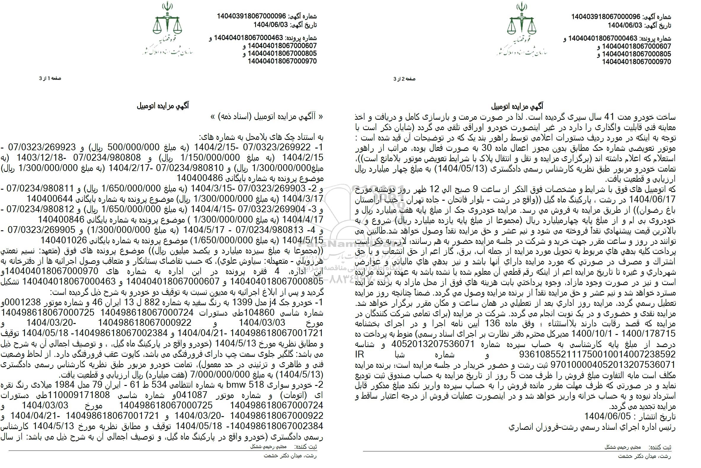 13 فراخوان مزایده خودروهای مستعمل 9685933 1404/07/20 new not special not payed هرمزگان