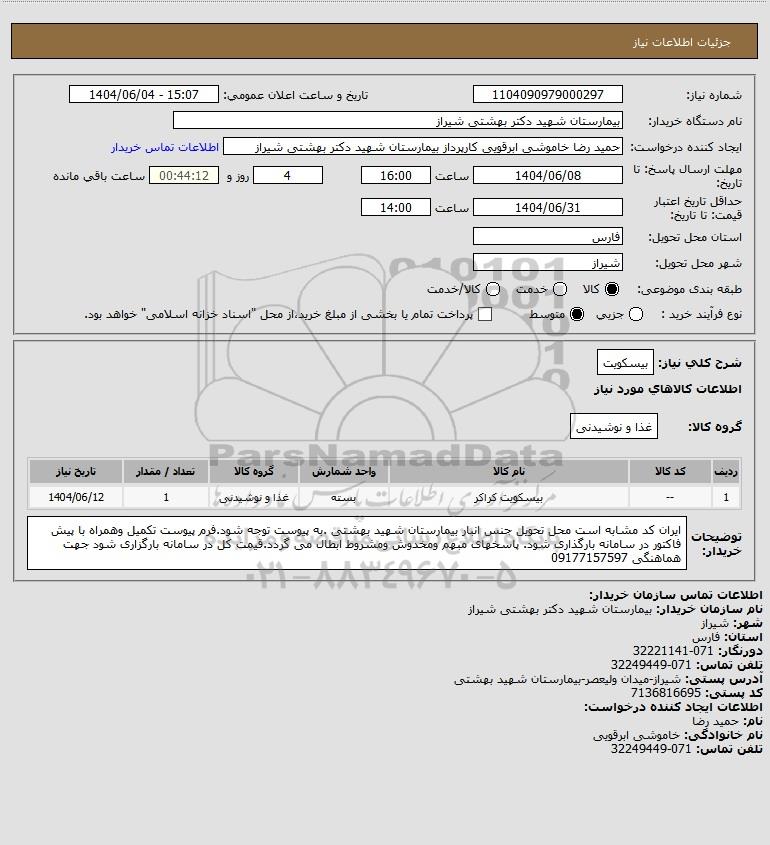 نام سازمان خریدار: بیمارستان شهید دکتر بهشتی شیراز