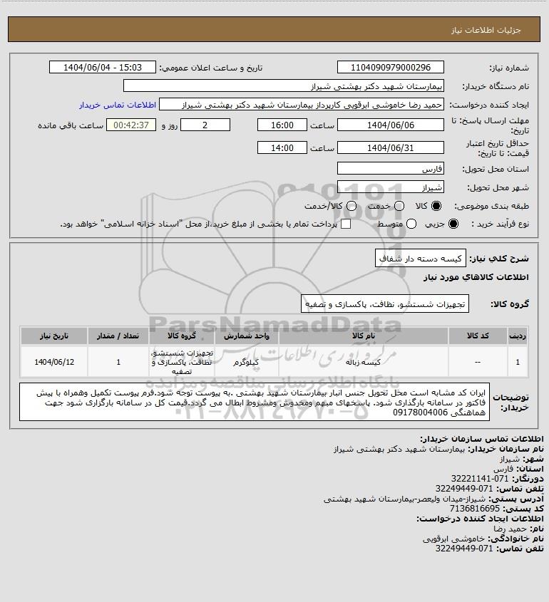 نام سازمان خریدار: بیمارستان شهید دکتر بهشتی شیراز