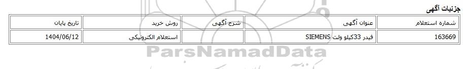 163669فیدر 33کیلو ولت SIEMENSاستعلام الکترونیکی1404/06/12