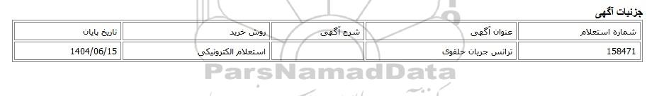 | 158471 | ترانس جریان حلقوی | استعلام الکترونیکی | 1404/06/15 |