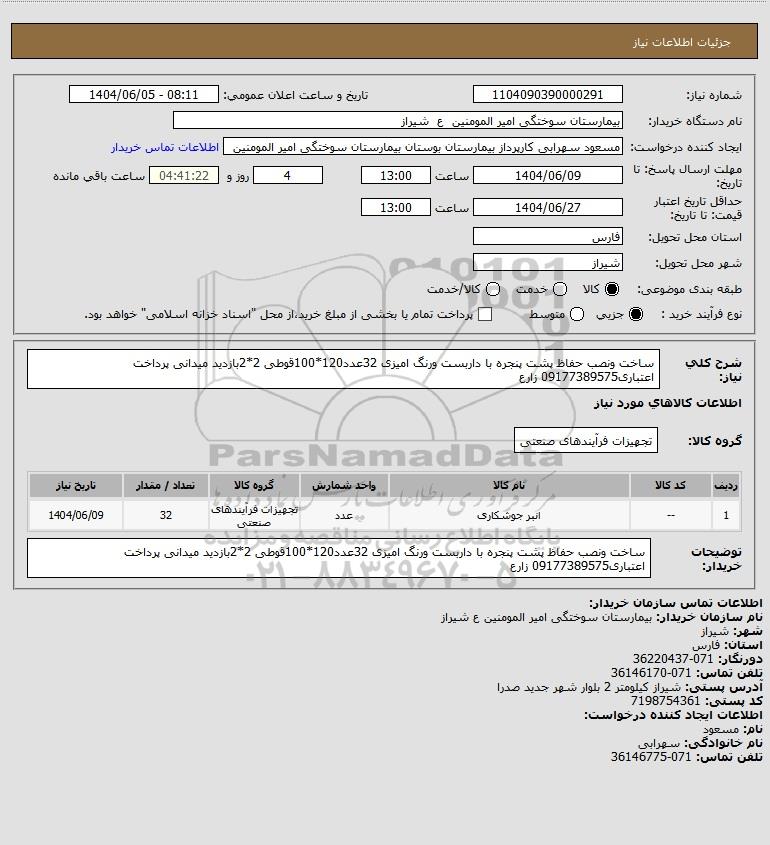 نام دستگاه خریدار:بیمارستان سوختگی امیر المومنین ع شیراز