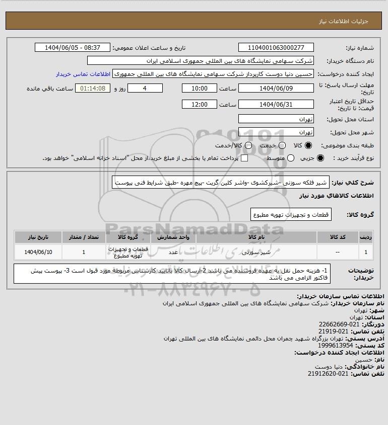 نام دستگاه خریدار:شرکت سهامی نمایشگاه های بین المللی جمهوری اسلامی ایران