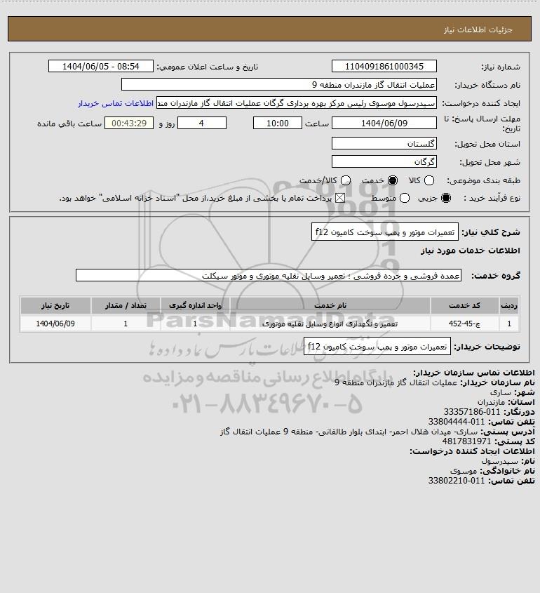 استعلام تعمیرات موتور و پمپ سوخت کامیون f12, استعلام تعمیرات موتور و پمپ سوخت کامیون f12
