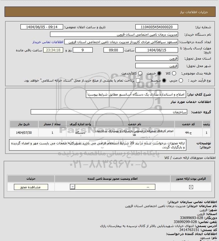 نام دستگاه خریدار:مدیریت درمان تامین اجتماعی استان قزوین