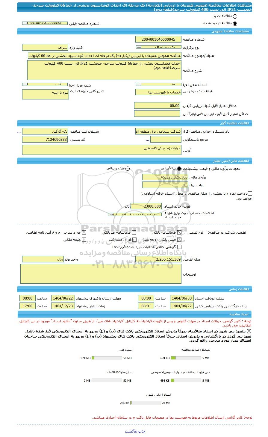 | مبلغ تضمین | 2,256,151,309 | واحد پول | ریال |