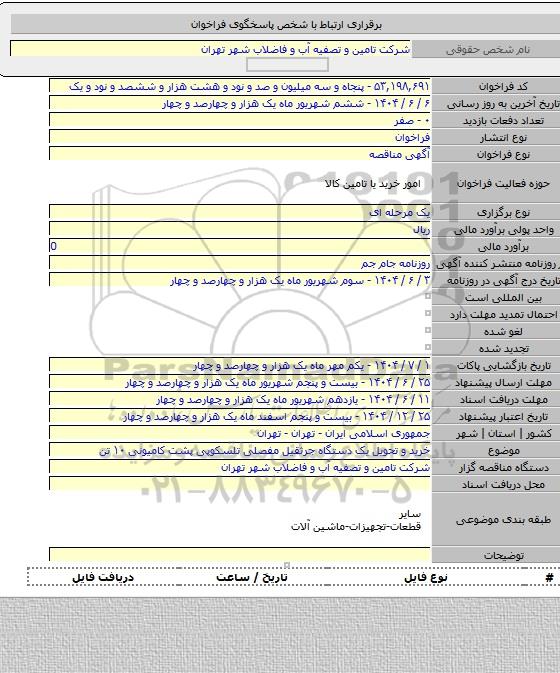 مناقصه خرید و تحویل یک دستگاه جرثقیل مفصلی تلسکوپی پشت کامیونی ۱۰ تن از کلیه افراد متخصص و شرکتها واجد شرایط دعوت به عمل میآید در مناقصه با کد خبرگزاری پارس نماد: 9462661 شرکت نمایند.
