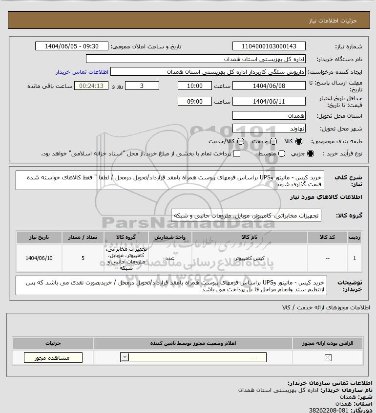 شرح کلی نیاز: خرید کیس - مانیتور وUPS براساس فرمهای پیوست همراه باعقد قرارداد/تحویل درمحل / لطفا " فقط کالاهای خواسته شده قیمت گذاری شوند